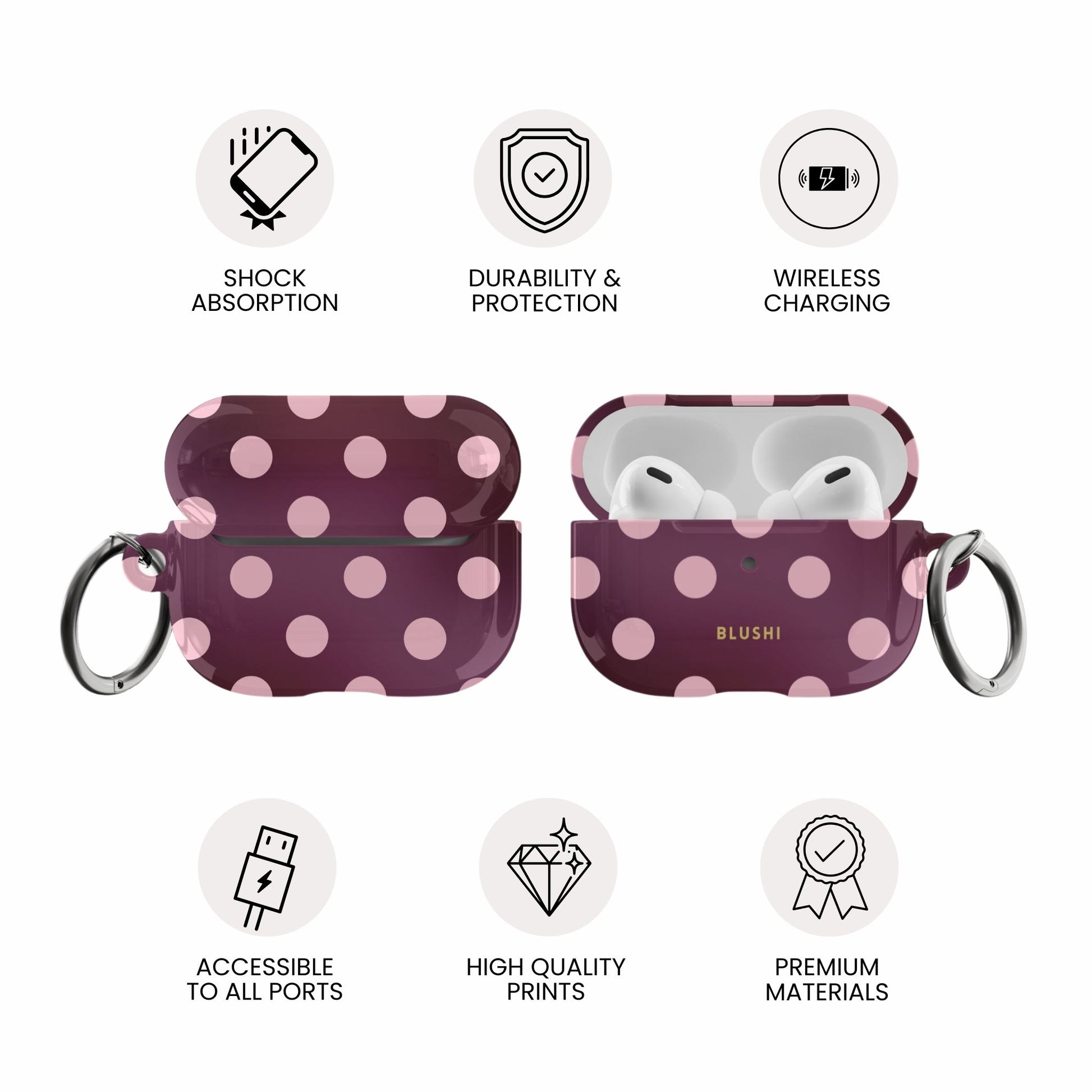 Étui AirPods Polka Dot Aura bordeaux et rose