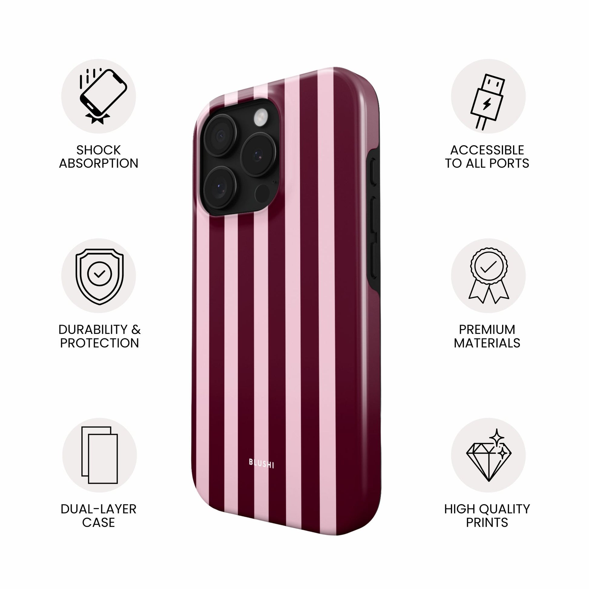 2. Qu'est-ce qui rend les coques BLUSHI si spéciales ? Chez BLUSHI, nous pensons que les coques de téléphone doivent être plus qu'une simple protection : elles doivent refléter votre personnalité. Nos coques allient une protection haut de gamme à des imprimés éclatants et résistants à la décoloration, ainsi qu'à une finition brillante et élégante. Les coques BLUSHI sont conçues pour sublimer votre style tout en protégeant votre appareil.
