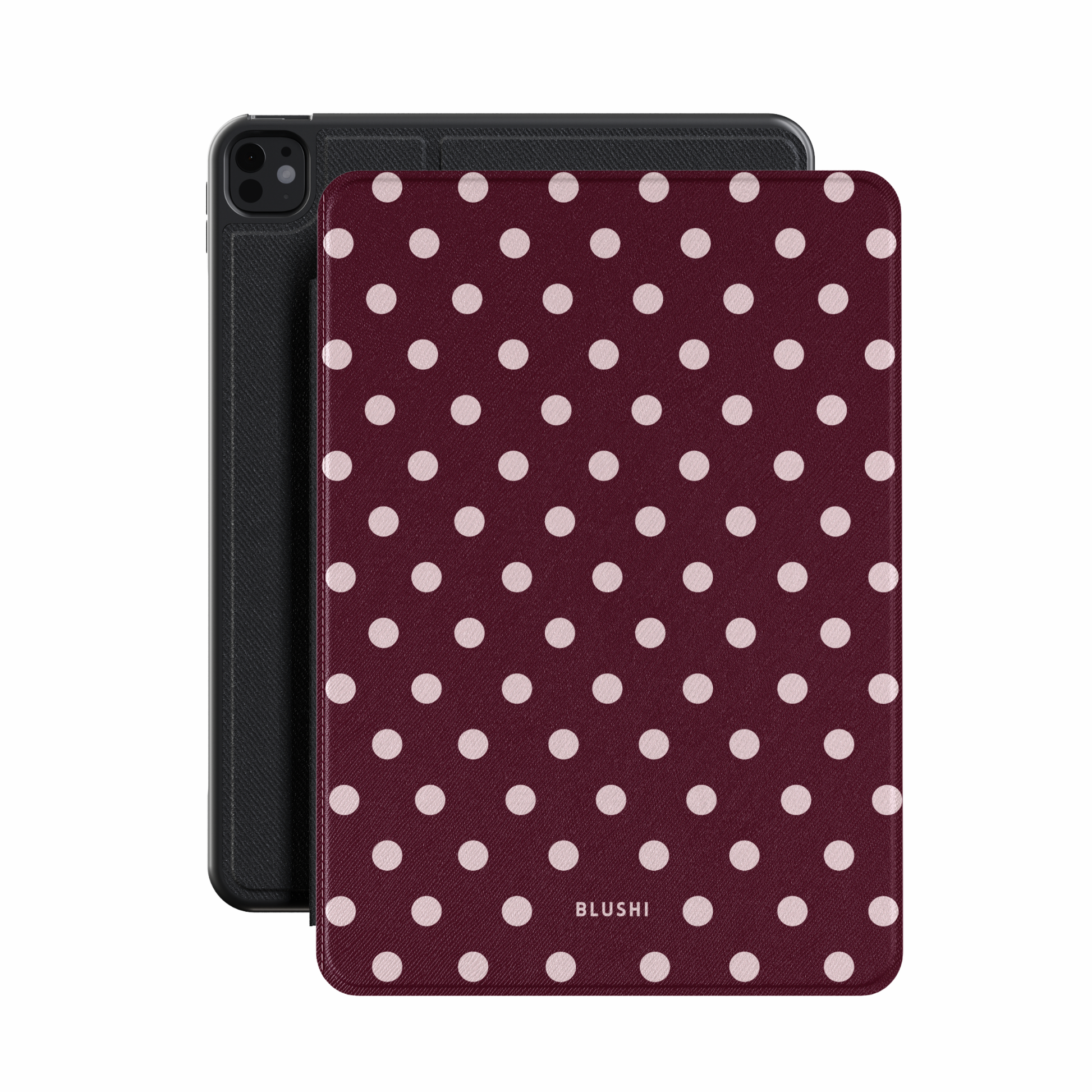 Turn your iPad into a true fashion statement with our Polka Dot Burgundy & Pink iPad case. Crafted from premium vegan Saffiano leather, this case keeps your device safe from scratches while elevating its look. Practical details like the built-in Apple Pencil holder and adjustable stand make it as functional as it is fashionable.
